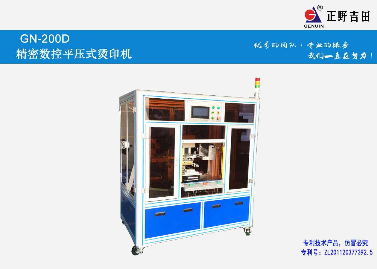 隨著熱燙印技術在中國不斷發展壯大,國內許多大品牌LED/LCD電視生產商都青睞于電視外框熱燙印工藝,燙印全彩、鉑金、銀拉絲或光亮等效果明顯提高產品檔次及美觀。GN-898 LCD/LED電視外殼燙印機針對大面積產品平面燙印設計,解決以往燙印大件產品起皺及燙印效果不理想的難題,為LED/LCD電視提供了新的生產工藝,提高產品的檔次;